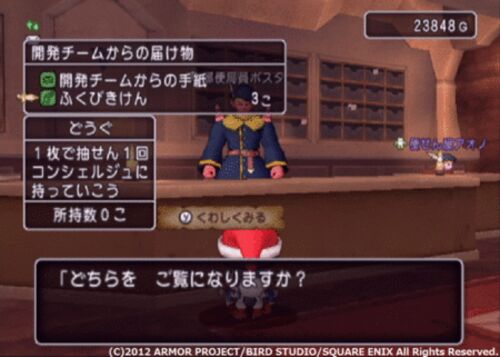 http://hiroba.dqx.jp/sc/topics/detail/9778d5d219c5080b9a6a17bef029331c/ 12月25日の午前5時頃になりますが、運営からのクリスマスプレゼントが。 公式サイトのページ内に記載されてるプレゼントのじゅもんを入力することで バージョン1.2にて実装…