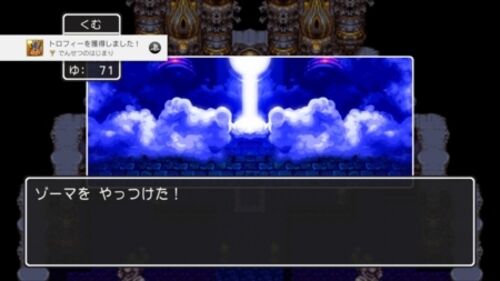昨日、23時過ぎに挑みまして、こっちでも大魔王ゾーマを倒しました。 強かったけども、HP自動回復がないので、バラモスよりずっとましw 敵の火力が大きいので、こちらのHP260未満になったら ベホマで回復しておくのが無難かもかなあと。 いてつくはど…
