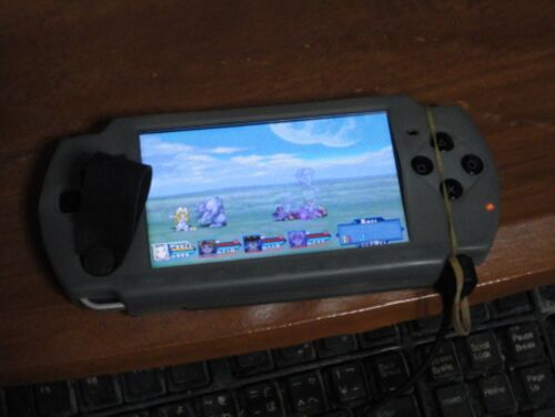 もうこれしか方法がない。 Rボタンを太めの輪ゴムで縛って固定。 アナログスティックを左下に動かしてから、柔らかいゴム板を挟んで固定。 これでフィールド上のモンスターとであれば、完全自動で戦闘を続けてくれます。 ファンタジアのフィールドは、Lボタ…