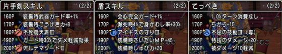 片手・盾・てっぺきのスキル160以降はこんな感じにしました。