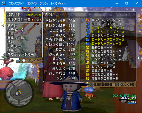 完成によって、メインキャラくむくむの僧侶はHP939になりました。