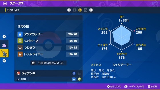 捕まえたダイケンキはこんな感じ。