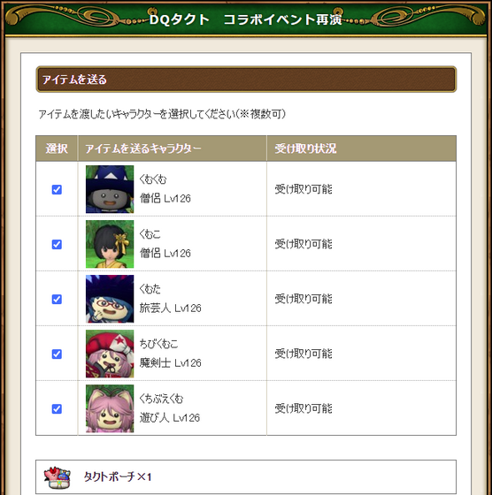 公式サイトのイベントページにて、全キャラ受け取ることが可能。