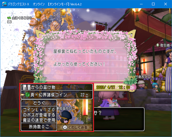 お手紙と「真・幻界諸侯コイン」が入っていました。
