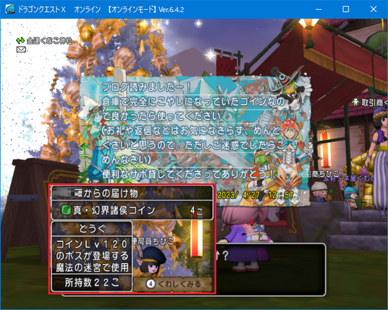 ビックリしたのが、別の方からもお手紙と真・幻界諸侯コインの支援がw