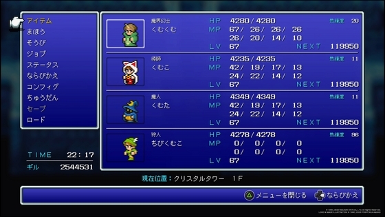 こちらは縛りは一切しておらず、むしろ経験値ギル4倍の状態で