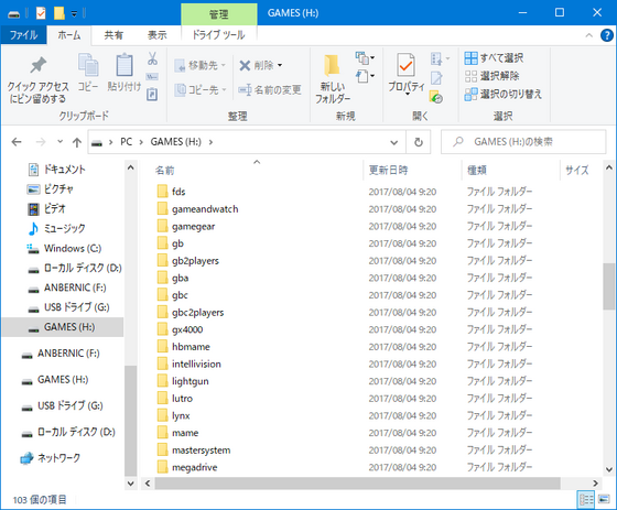 「ANBERNIC」と「GAMES」が表示されるので、GAMESの方を開くと