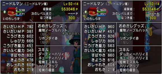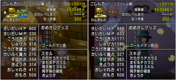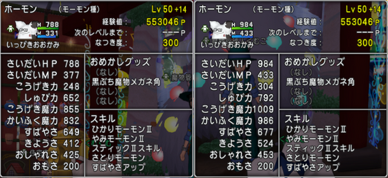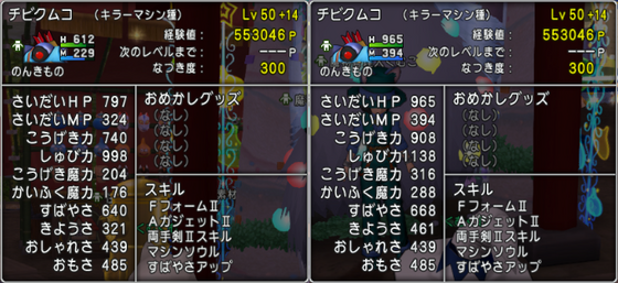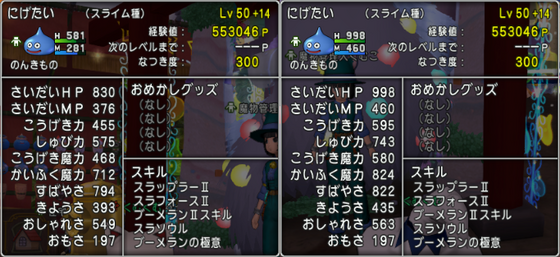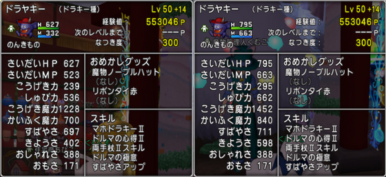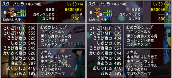 とりあえず、仲間モンスターの能力値の変化を今回は載せますね。