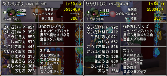 目立つのが「HPの上昇量」と「回魔の上昇量」の2点になるかなと思う。