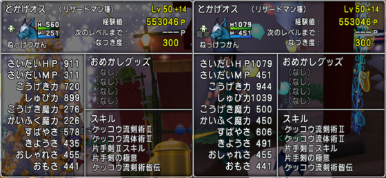 すばやさの値は、どのモンスターもあまり上昇していない部分みたいで