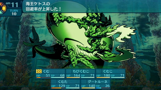 「潮吹き」で頻繁に回避率を上げてくるので、攻撃がまず外しやすい。