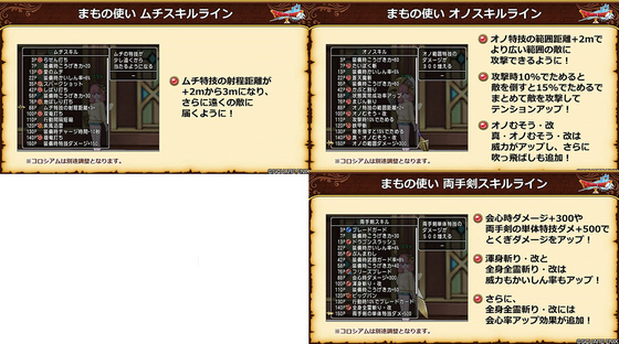 両手剣:特技威力UP、会心時ダメージUP、メイン特技の会心率もUP