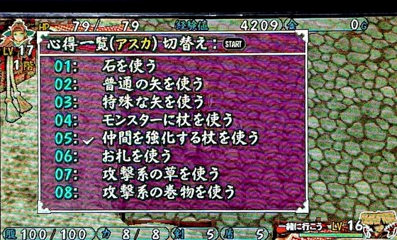 風来のシレン3は、レベルが継続性になっております。
