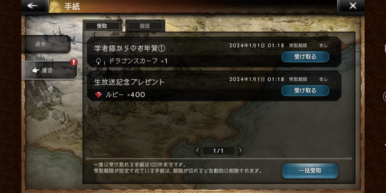 「ドラゴンスカーフ」と「無償400ルビー」が配布。