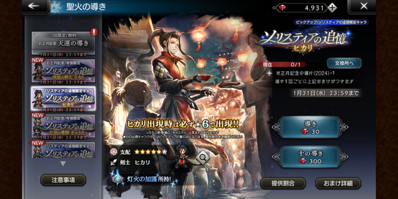 「ヒカリ」と「キャスティ」のガチャ(ソリスティアの追憶)が開催開始。