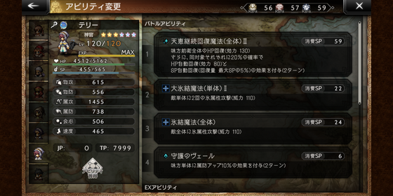 後衛時に、前衛にSP自動回復の効果を付与できるので、後衛でも役立ちます。