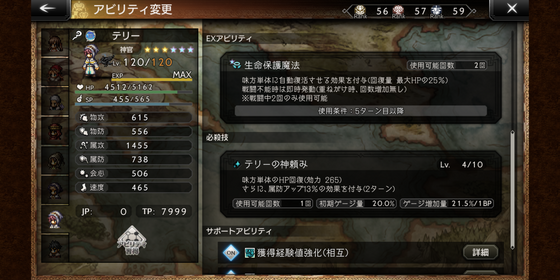 EXアビリティは「生命保護魔法」が2回使えます。