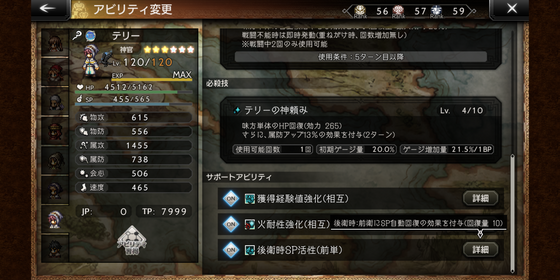 「後衛時SP活性(前単)」のサポアビ持ち。