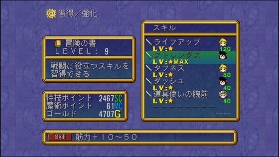 敵を倒すと「特技ポイント」や「魔術ポイント」が経験値とは別に貰えますが