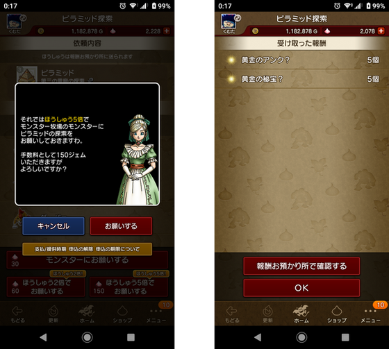 「黄金のアンク?」と「黄金の秘宝?」が5個入手できます。