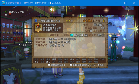 一角鬼の闘着上+2 約12万ゴールド