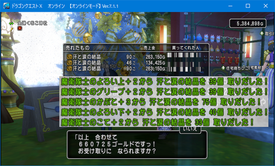 メインキャラくむくむの古い魔剣士防具も結晶化して売りました。