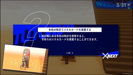 スキルカード複製、神社ではなく「朱色の時計」から行えるようになっています。
