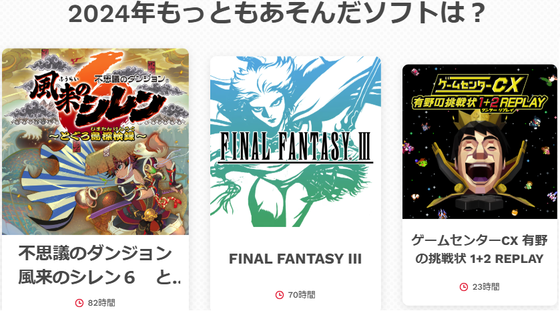プレイ時間の集計期間は2024年1月1日から2024年11月30日までとのこと。