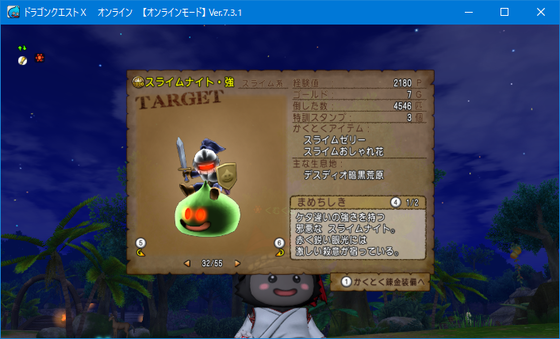 727匹のスライムナイト・強を倒した計算になります。