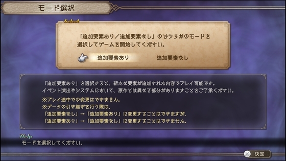 ゲーム開始時に「追加要素あり」「追加要素なし」の選択ができて