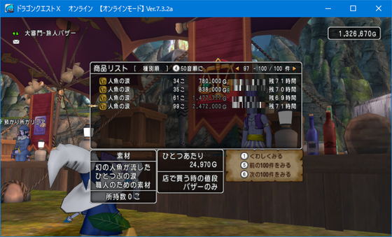 彼岸の砂は、1個20000~24000ゴールド