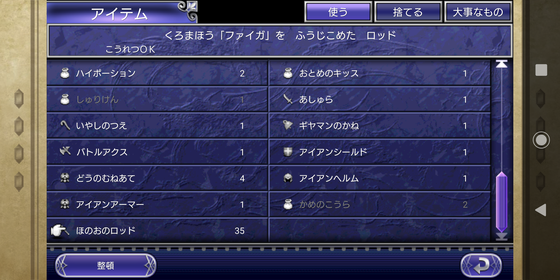 強制牢屋イベント直後にアイテム欄を開いてみましたが
