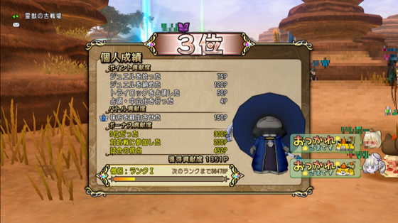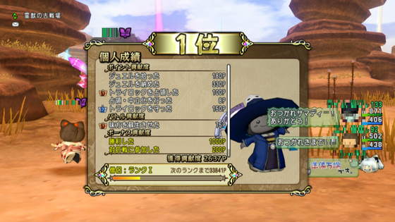 今日、バトルトリニティに僧侶で乗り込んで出した結果がこちら。