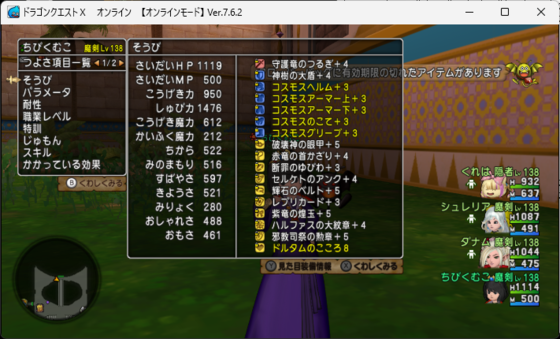 「HP1114、守備力1458」→「HP1119、守備力1476」になりました。
